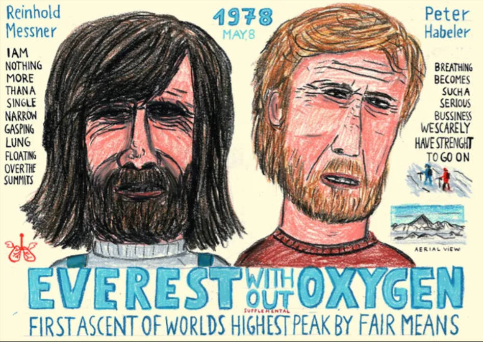 Ο Τένζινγκ Νόργκεϊ δεν το πίστευε. Ούτε οι άλλοι πέντε Σέρπα που είχαν ανέβει στην κορυφή του Έβερεστ από το 1953, όταν ο Τένζινγκ και ο Έντμουντ Χίλαρι χτύπησαν για πρώτη φορά τον «κάθαρμα». Οι Ευρωπαίοι ήταν πολύ γρήγοροι -πολύ γρήγοροι για να ανέβουν το βουνό με φιάλες οξυγόνου, πόσο μάλλον χωρίς αυτές. Αλλά αυτός ήταν ο ισχυρισμός που έκαναν ο Ιταλός Reinhold Messner, τότε 33 ετών, και ο Αυστριακός Peter Habeler, 35 ετών, για την κορυφή του Έβερεστ στις 8 Μαΐου 1978. Είπαν ότι είχαν φτάσει στην κορυφή των 8.849 μέτρων από το Camp IV, το οποίο βρίσκεται στα 7.950 μέτρα στο South Col, τη διάσελο μεταξύ του Everest και του γειτονικού Lhotse- σε λίγο λιγότερο από οκτώ ώρες. Είχαν περάσει 15 λεπτά στην κορυφή και μετά επέστρεψαν ο καθένας ξεχωριστά, o Habeler σε μία ώρα και ο Messner σε μία ώρα και 45 λεπτά.