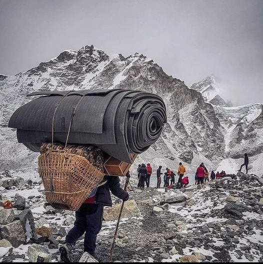 Σε ηλικία 66 ετών, ο Rana Bahadur Dahal από το Chainpur, Sankhuwasabha, κουβαλάει ένα σακίδιο σαν βουνό και κάνει μια απότομη, ανηφορική πεζοπορία. Είναι ένας αχθοφόρος που εξυπηρετεί ανθρώπους στην περιοχή του Έβερεστ. Συνήθως, κουβαλά βάρη περίπου 55 κιλών που περιέχουν ζυμαρικά, μπισκότα και ποτά.
